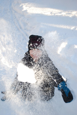 Nu kunde jag och barnen ta oss en härlig och uppfriskande promenad... Det var otroligt fint ute, det rasade snö från träden som om det vore vår, ganska otroligt när det är så pass kallt, men det klart, från -29,8 till - 14 är ju nästan vår <3